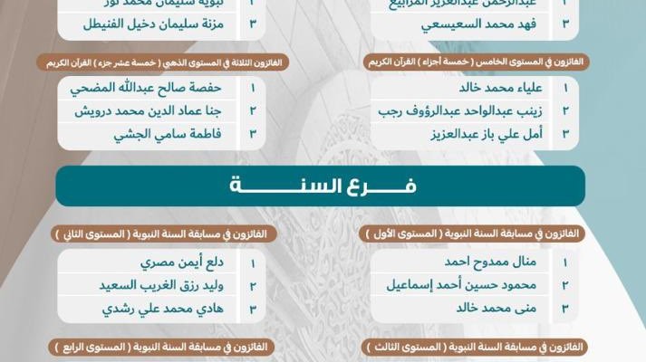 يسر جمعية قبس للقرآن والسنة والخطابة أن تعلن عن أسماء الفائزين في مسابقة الشيخ سليمان بن عبدالرحمن الحماد الأسرية (4) كما تتقدم الجمعية بخالص الشكر لأسرة الحماد الأكارم على دعمهم السخي ورعاية المسابقة متمنين لهم التوفيق والرحمة والمغفرة للشيخ/سليمان بن عبدالرحمن الحماد